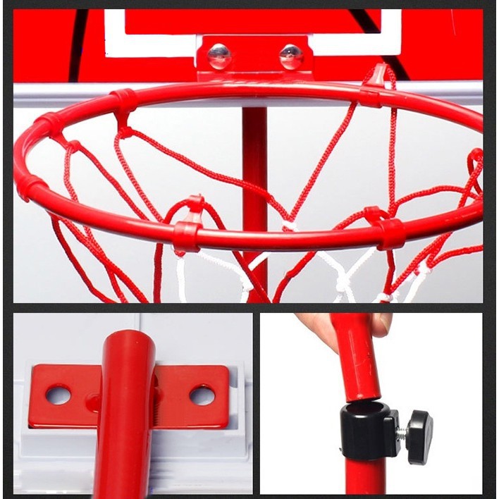 - Chân đế được làm từ nhựa ABS chịu lực cực tốt, thân Bộ Bóng rổ được làm từ thép chống gỉ, có ren bắt vít – sản phẩm an toàn cho mọi lứa tuổi.
