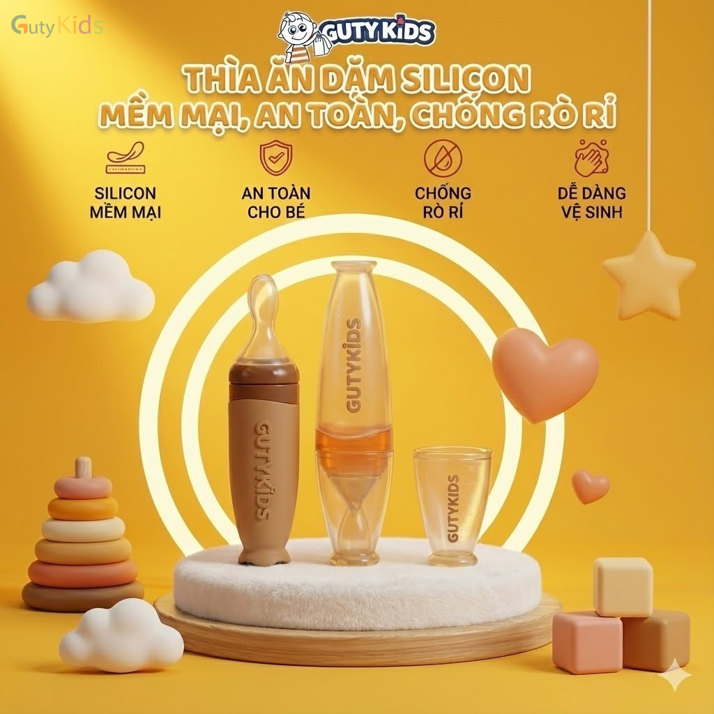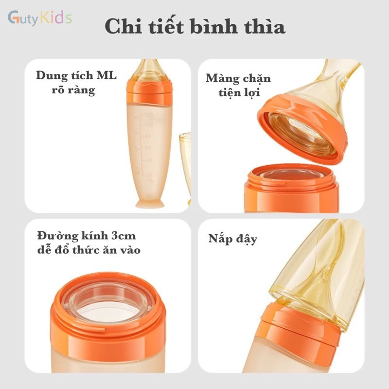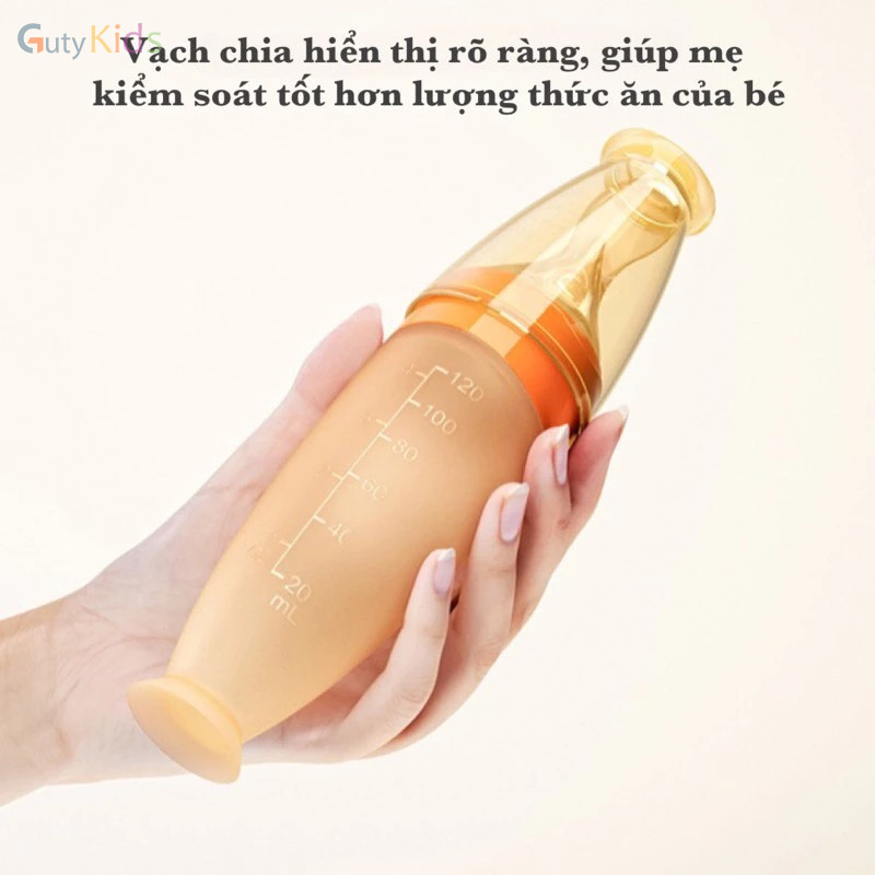 -Được làm từ silicone cao cấp, bình thìa ăn dặm đảm bảo an toàn tuyệt đối, không gây kích